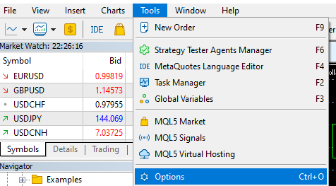 Go to "tools → options" on your MT5.