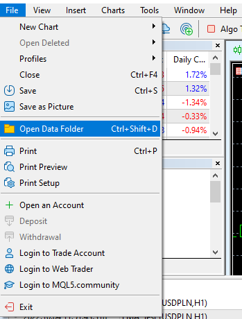 Open MT5 and go to "File -> Open Data Folder".